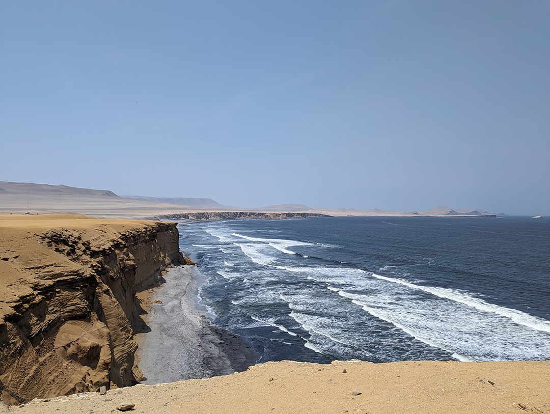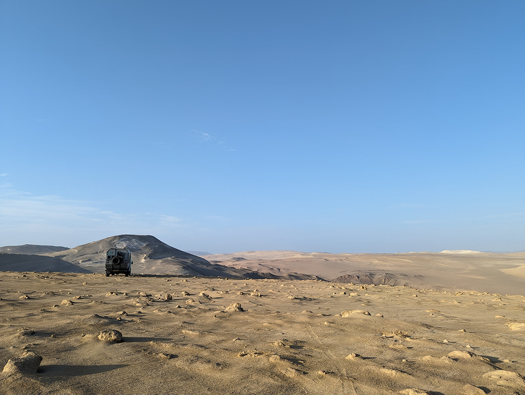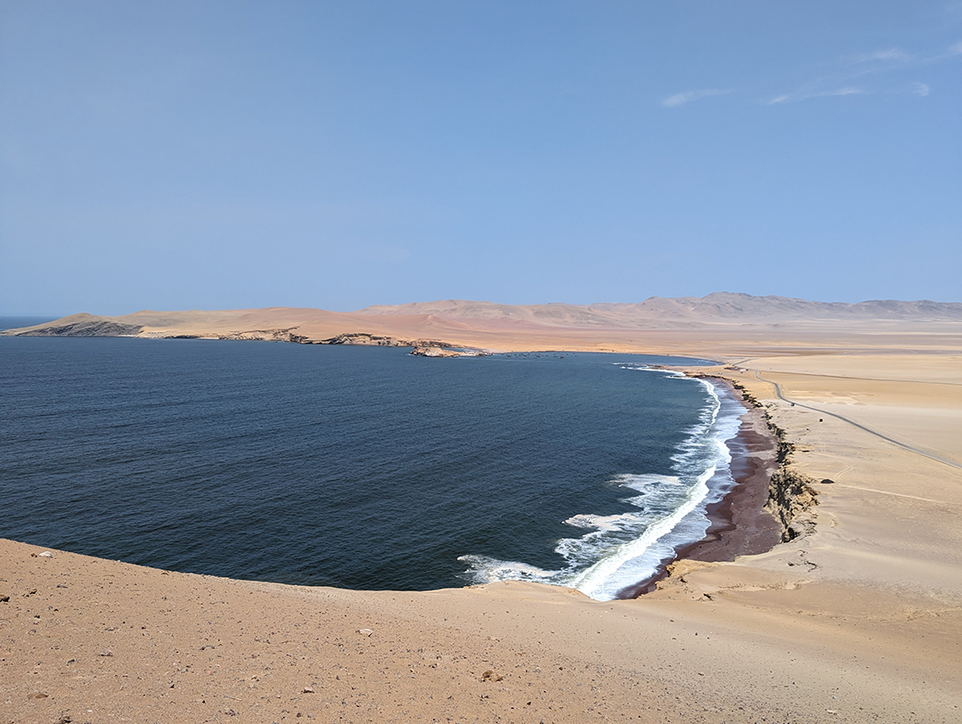 But for us overlanders, the real highlight was driving the sandy dirt tracks of the Paracas Peninsula, with its rugged cliffs, wind-carved rock formations, and wild beaches. One of our favorite stops was Playa Roja (Red Beach), where the iron-rich volcanic minerals tint the sand a deep, dramatic crimson. We even spotted wild flamingos feeding in the shallow coastal waters—our first flamingo sighting of the trip, which made it even more memorable. Paracas offers a unique blend of rich wildlife and dramatic coastal scenery that makes it an ideal stop for anyone overlanding through Peru.