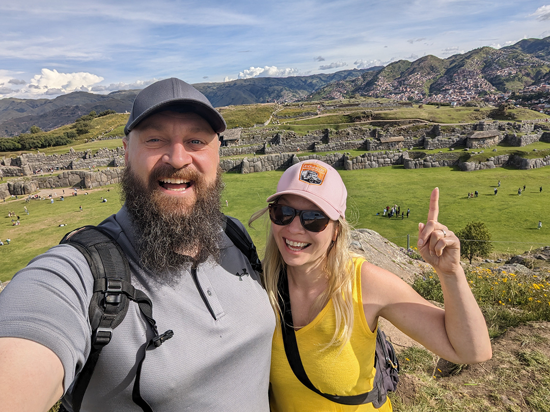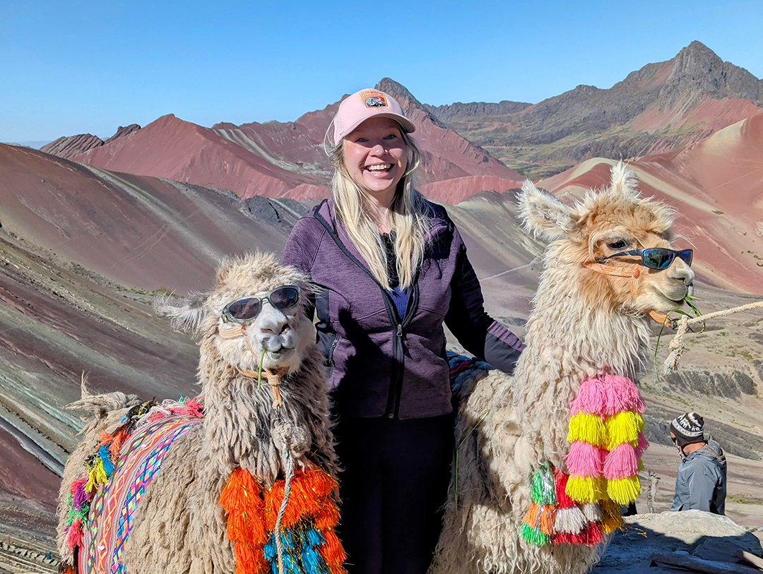 The view from the summit was nothing short of breathtaking. Though we usually skip touristy photo ops, we couldn’t resist taking a picture with the decorated llamas—a fun experience based on tips to the local handler. After our hike, we returned to our rig, made breakfast, and relaxed as hundreds of tour vans filed in and out. By mid-afternoon, the parking lot had cleared, and we had the entire road back to the highway all to ourselves.