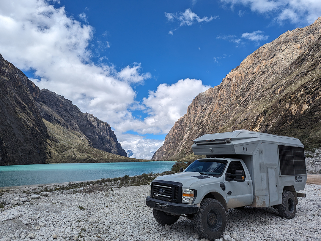 Our time in Huascarán National Park easily ranks as one of the most beautiful natural experiences we’ve had in all of our overland travels. Named after Peru’s highest peak, Mount Huascarán, which stands at 6,767 meters (22,205 feet), the park is part of the Cordillera Blanca range in the Andes. It’s filled with dramatic glaciers, turquoise lakes, and abundant wildlife—including the northern viscacha, a high-altitude rodent that looks like a mix between a rabbit and a chinchilla.