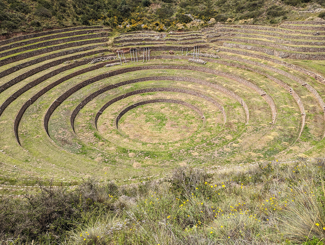 About 20 miles (32 kilometers) from Ollantaytambo—roughly a 1.5-hour scenic drive through the Sacred Valley—you’ll find the unique archaeological sites of Moray. Sitting at an altitude of 3,500 meters (11,500 feet), Moray features a series of circular terraces arranged in deep, bowl-shaped depressions carved into the earth. It may not have the grandeur of Machu Picchu, but what it lacks in size it makes up for in sheer ingenuity.