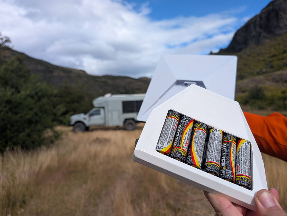Since then, we’ve continued to refine our system, and now added in the Starlink Mini which can be powered from 12 volts natively, this is perfect for remote hiking when we are away from the truck. However, connecting a reasonable sized battery without adaptors and cables can be an issue and oftentimes bulky with adapters and cables. Enter the StarSled Go—a compact, affordable, and lightweight battery pack designed specifically to socket into the recess of the Starlink Mini.
