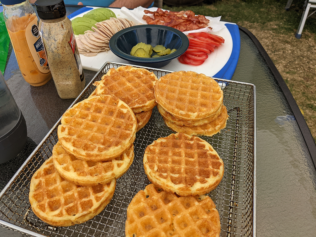 These are perfect for those wanting a quick, low-carb treat on the road. I really love my Dash Mini Waffle Maker, and I use it often. My favorite combo? Chilean smoked salmon and cream cheese on one of these waffles!
