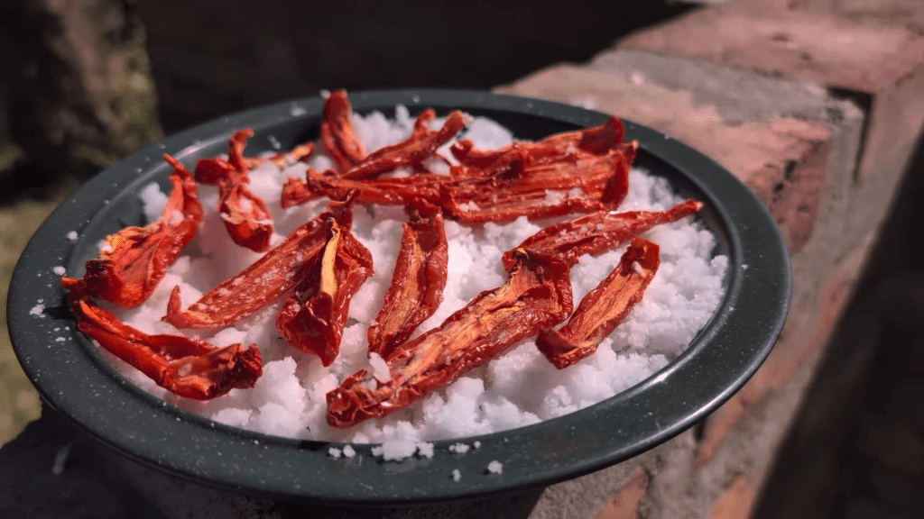 Although you may not be able to find sun-dried tomatoes everywhere, we’ve found that making our own is easy. We just chop up tomatoes, gouge out the seeds, salt them, and leave them on the dashboard of the truck for a day or two. It doesn’t take long in the hot Central American climate!